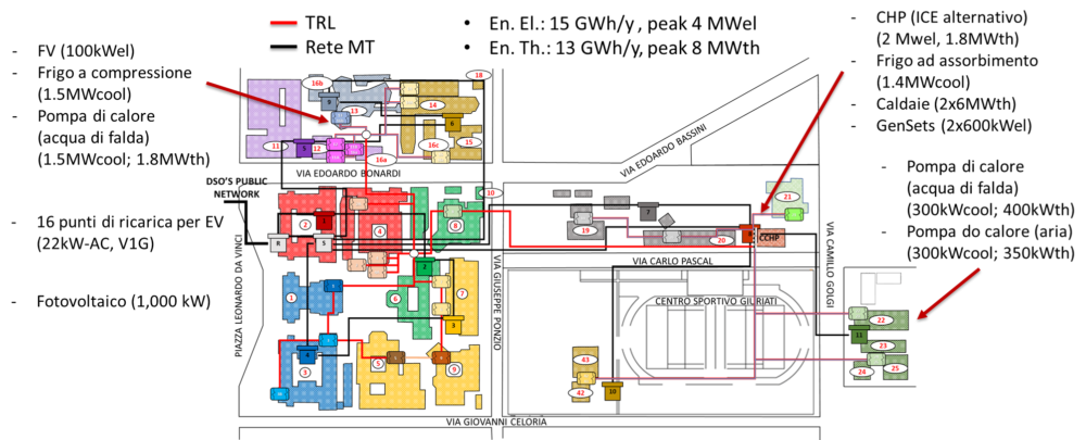 Il progetto PoliGrid – la smart grid del Politecnico di Milano – nasce per garantire maggiore continuità nel servizio elettrico del campus di Piazza Leonardo Da Vinci, Via Bassini, Via Bonardi e Via Golgi. Oggi, il campus esteso di Leonardo-Bassini-Bonardi-Golgi costituisce un vero e proprio distretto energetico multi-vettore, in grado tra le altre cose di fornire servizi avanzati di flessibilità alla rete pubblica di distribuzione.